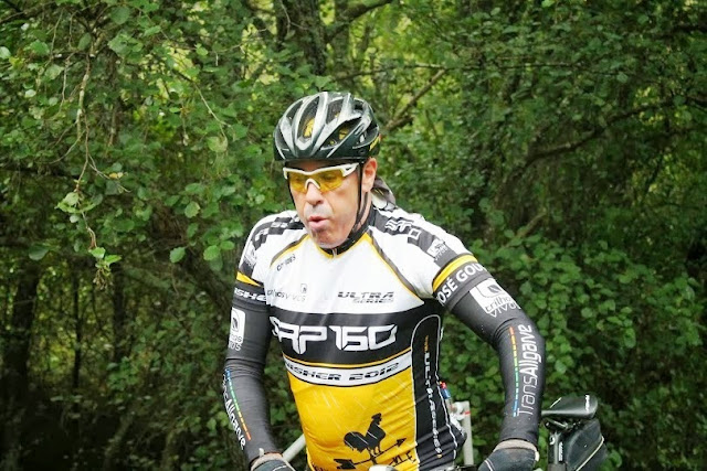 Mas mais uma vez, numa descida a minha (técnica apuradíssima) fez-me ir ás moitas. Mas acho que é grave, o corpo caiu de lado em cima do meu antebraço esquerdo e senti algo que não gostei. Fiquei durante uns momentos com a respiração bloqueada. Como seguia na retaguarda do grupo, ninguém se apercebeu e como não quis alarmar os restantes participantes, lá fui com muito custo, pedalando e gemendo de dores. foi depois da cidade de Tomar, portanto ao K 40, ainda faltavam 60 K.